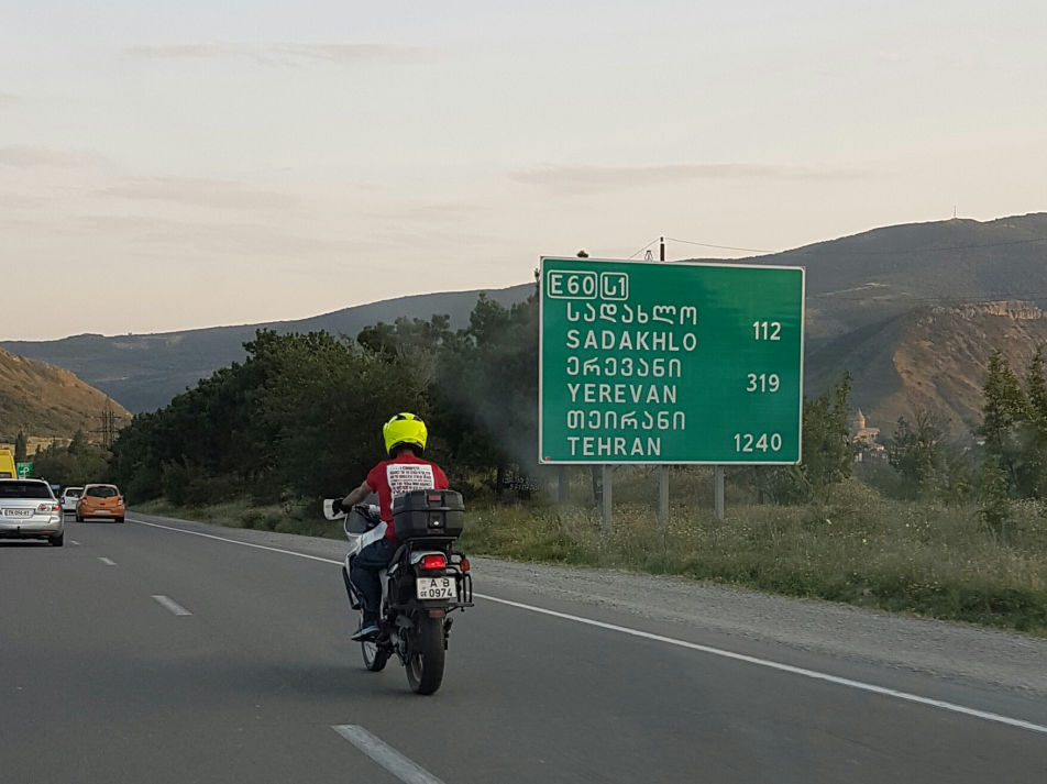 Next stops were the capital Tbilisi (last stop to buy supplies for the car; Beau getting a haircut) and then straight to Armenia. This was the first time that Tehran was announced on road signs. Quite a milestone!